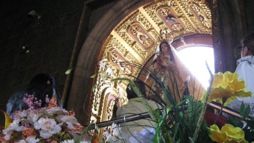 He writes both about the local faithful as well as those who venerate the image from a distance. In his Spanish language text, he has documented that La Virgen de la Puerta is considered a mother by groups who find themselves on the margins of society. These groups include those who are part of the LGBTQ+ community, the poor, former prisoners and migrants. They “hope to find in her gaze a consolation,” he explains.